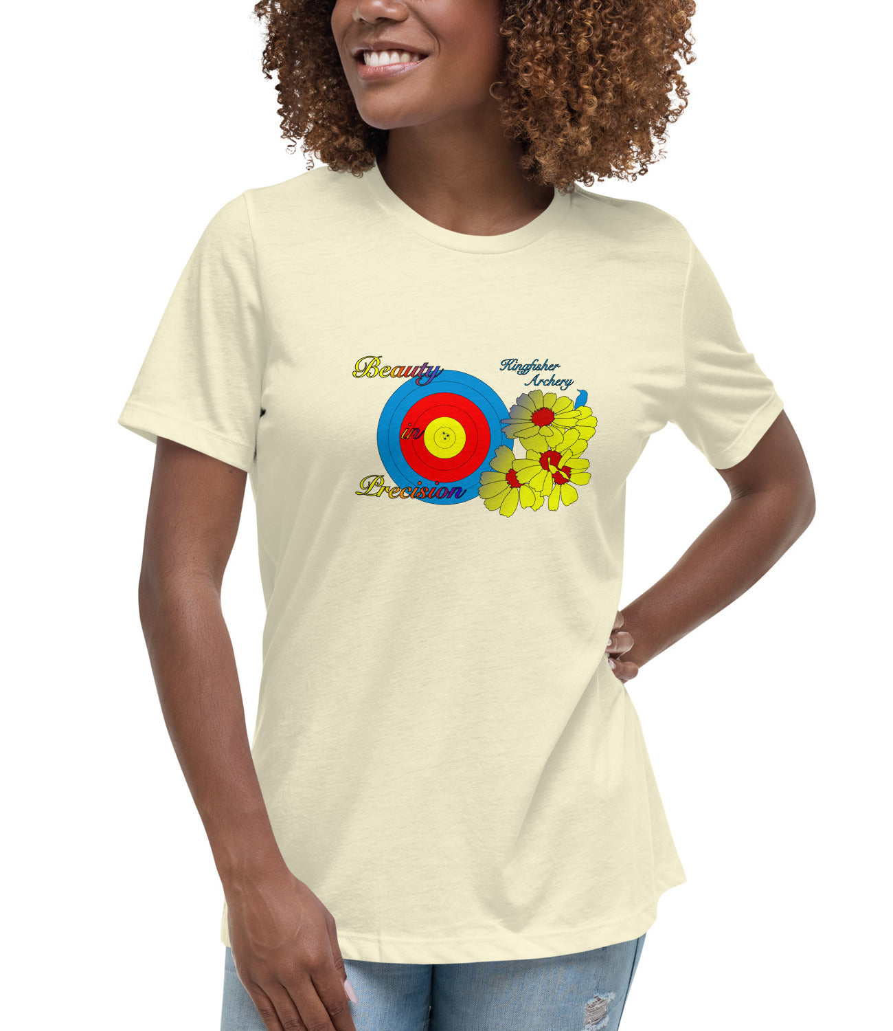 Ladies, are you looking for a comfortable, colourful way to express your passion for target archery? Look no further than Kingfisher Archery's women's relaxed Target Archery graphic tees!